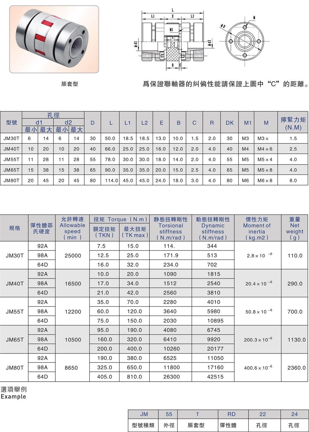 產品名稱:JM-T 雙節無齒隙彈性體聯軸器