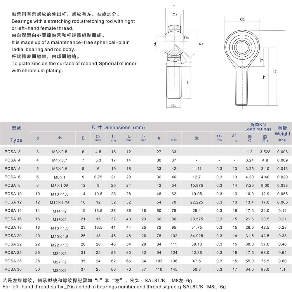產(chǎn)品名稱:POSA外螺紋自潤滑桿端關(guān)節(jié)軸承